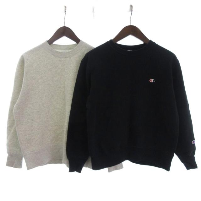 【中古】チャンピオン 2点 セット トレーナー スウェット 長袖 裏起毛 ワンポイント ロゴ 黒 ブラック グレー S■FF