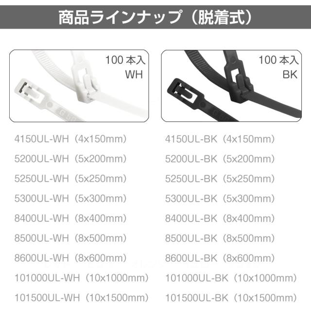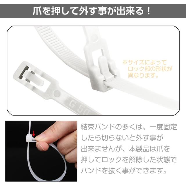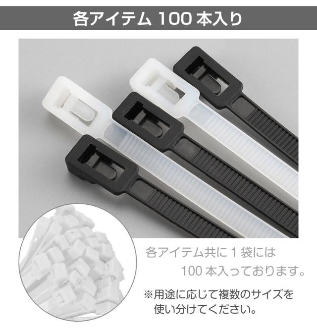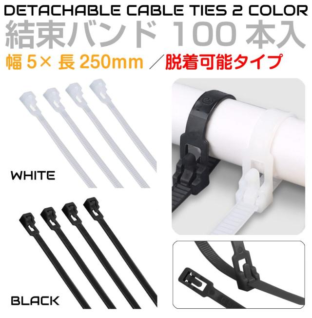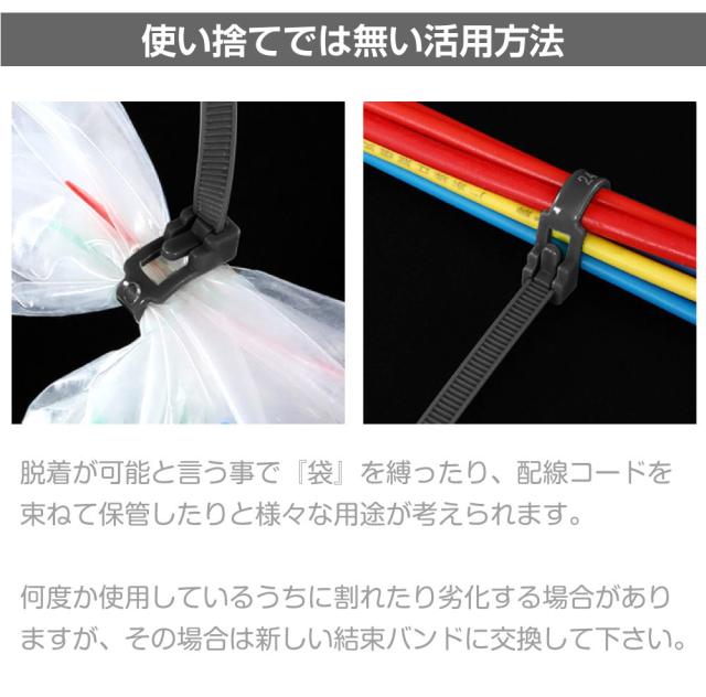 | 商品名 | 脱着可能 66ナイロン 結束バンド 幅5mm 長さ250mm 100本セット 全2色 |