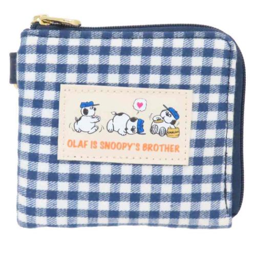 「スヌーピー ミニ財布 ミニウォレット オラフ ネイビーチェックシリーズ ピーナッツ キャラクター グッズ メール便可」