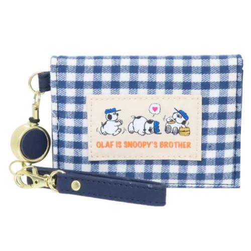 スヌーピー 定期入れ リール付き二つ折りパスケース オラフ ネイビーチェックシリーズ ピーナッツ キャラクター グッズ メール便可