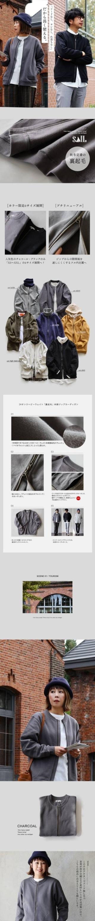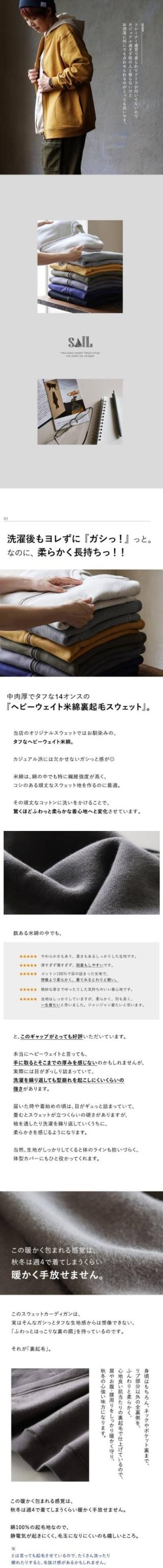 カーディガン スウェット ジップアップ 秋 冬 すっきり 着痩せ しっかり 丈夫 厚手 柔らかい 軽い 暖かい 裏起毛 綿100 USA コットン リブ ダブルジップ YKK メンズ レディース 長袖 クルーネック フードなし オフィス カジュアル パティ SAIL セイル