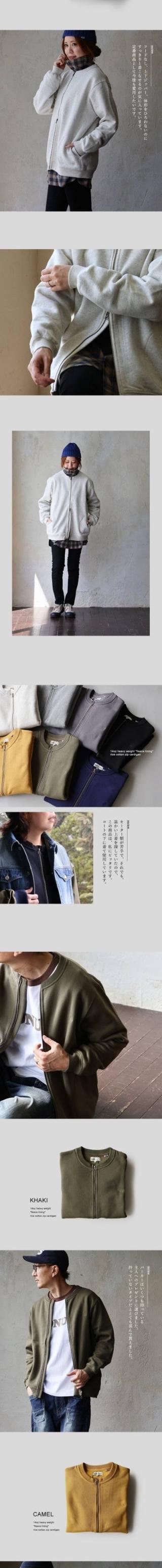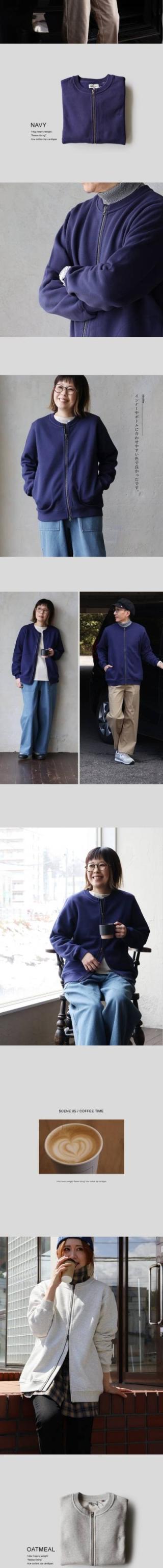 カーディガン スウェット ジップアップ 秋 冬 すっきり 着痩せ しっかり 丈夫 厚手 柔らかい 軽い 暖かい 裏起毛 綿100 USA コットン リブ ダブルジップ YKK メンズ レディース 長袖 クルーネック フードなし オフィス カジュアル パティ