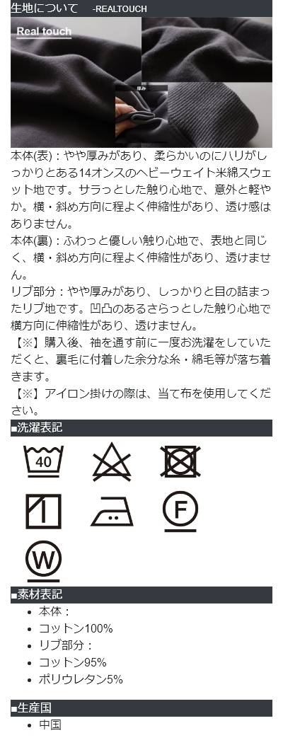 ・中肉厚でタフな14オンスの『ヘビーウェイト米綿裏起毛スウェット』。
