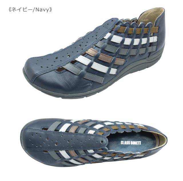 CLASS BONETT クラスボネット 54133 レディース シューズ スリッポン メッシュ レザー 革 編み込み 幅広 軽量 靴