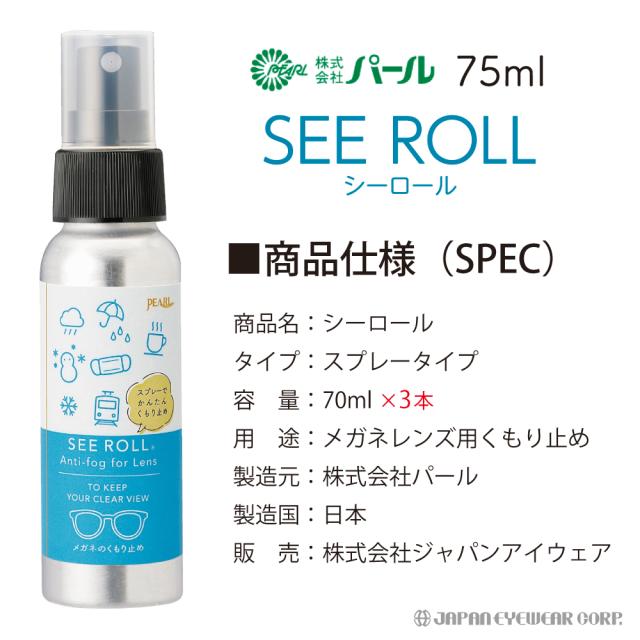 くもり止め 曇り止め スプレー メガネ 眼鏡 マスク パール くもり止め スプレータイプ 70ml SEE ROLL 3本セット シーロール レンズ ケア メガネのくもり止め 曇止め メガネクリーナー PEARLレンズ 汚れ くもりどめ