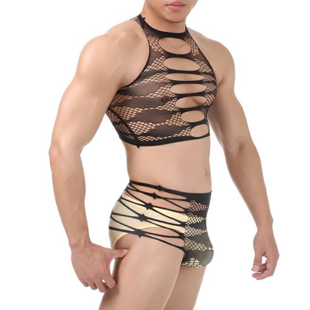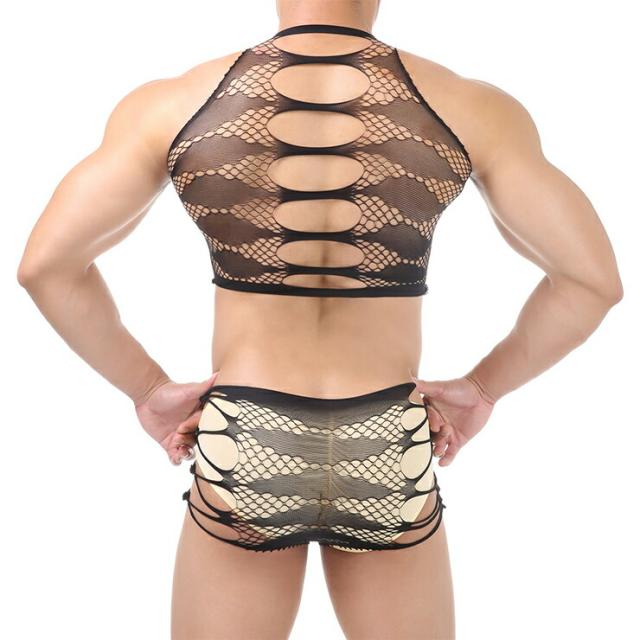 Lace suit set ファッション セクシー系 男性 レース素材 メッシュ生地 セクシー メンズ パッション 下着別販売