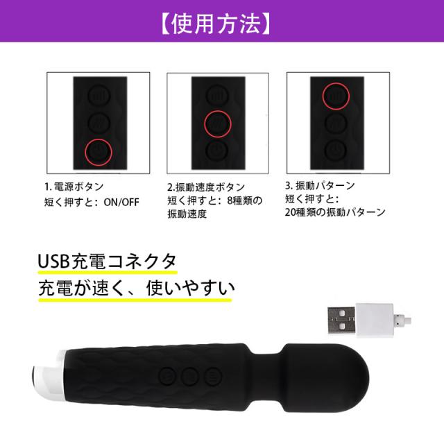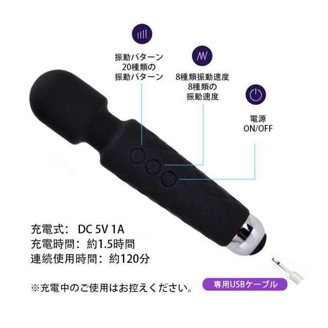 ハンディーマッサージャー 電動マッサージ器 電マ バイブ 小型 USB充電式 20種振動パターン 強力 振動 静音 防水