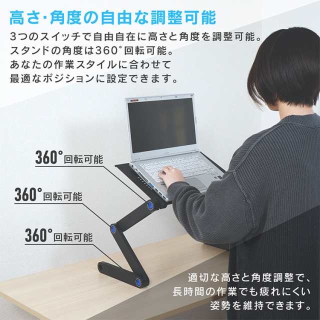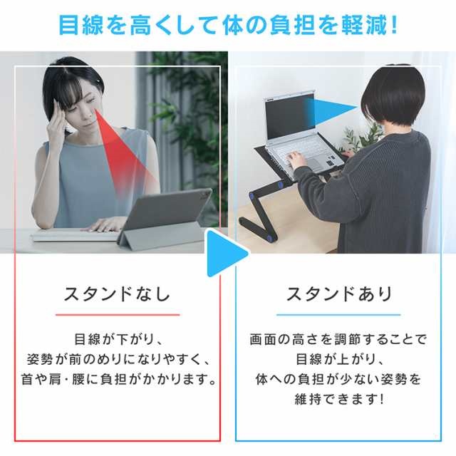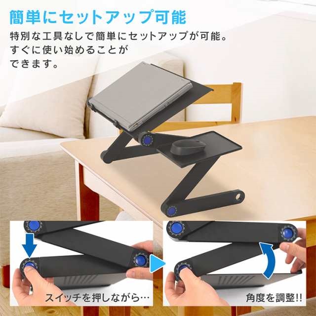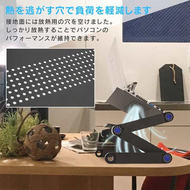 ノートパソコンスタンド PCスタンド パソコンデスク 伸縮型 折りたたみ 角度 高さ 自由自在 アルミ 軽量 持ち運び 雑誌 リラックス zk230