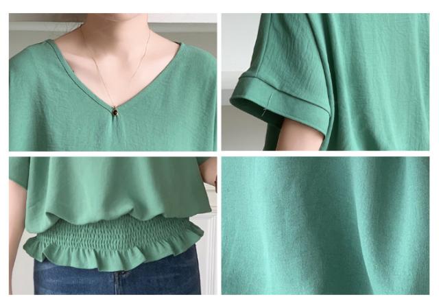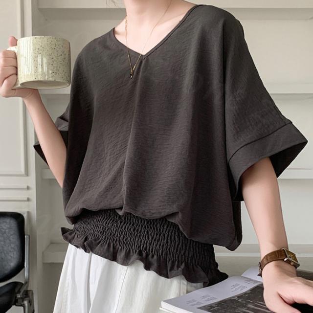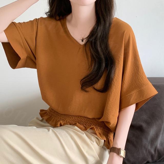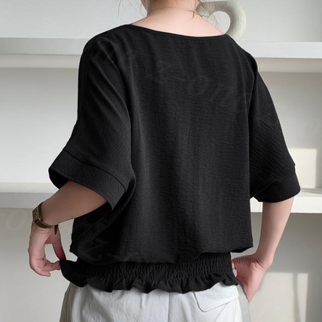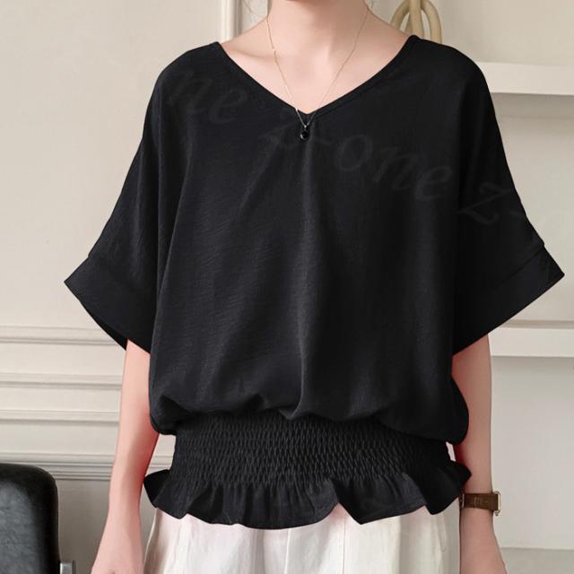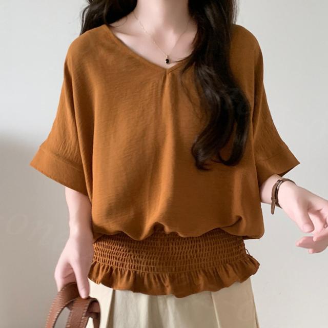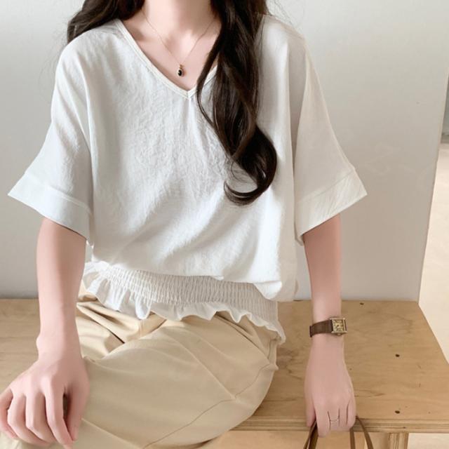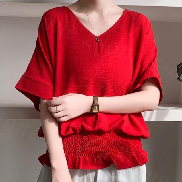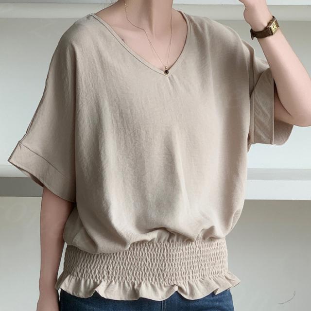 ブラウス リネン ウエストシャーリング 新作 トップス シャーリングブラウス レディース vネックブラウス 半袖 夏 vネック サマーブラウス 夏ブラウス シャーリングブラウス半袖 送料無料 入学式 入園式