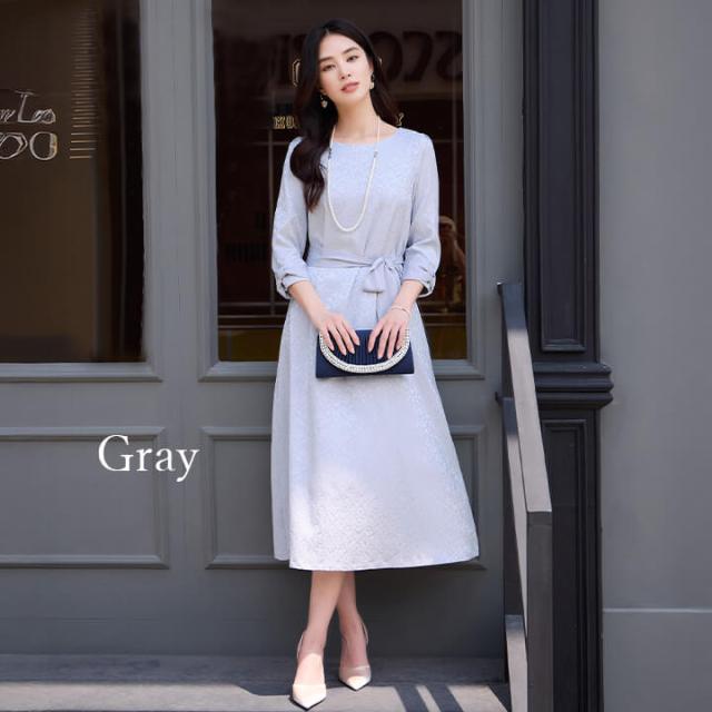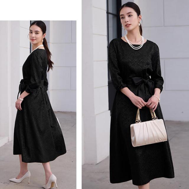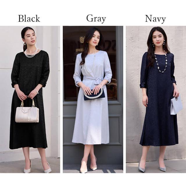 ワンピースドレス ロングドレス レディース パーティードレス ドレス セレモニードレス ジャカード生地 ロング丈 マキシ丈 ウエストリボン 袖口 フェミニン ラウンドネック 七分袖 長袖 結婚式 謝恩会 発表会 食事会 上品 きれいめ すっきり 軽やか 着心地 シルエット デコルテ エレガント クラシカル 上品 フォーマル 大人 抜け感 カジュアル オールシーズン 大きいサイズ 二次会 演奏会 同窓会 セレモニー 袖あり ブラック グレー ネイビー 黒 灰色 紺 20代 30代 40代 50代 60代 M L XL 9号 11号 13号 yj188686