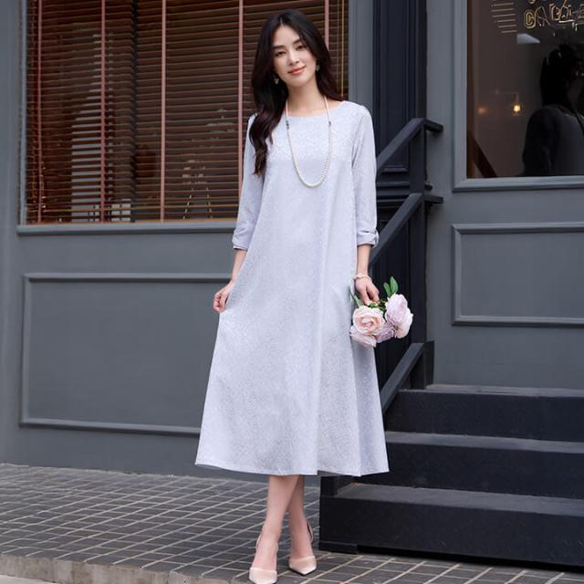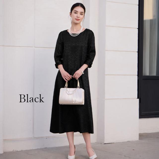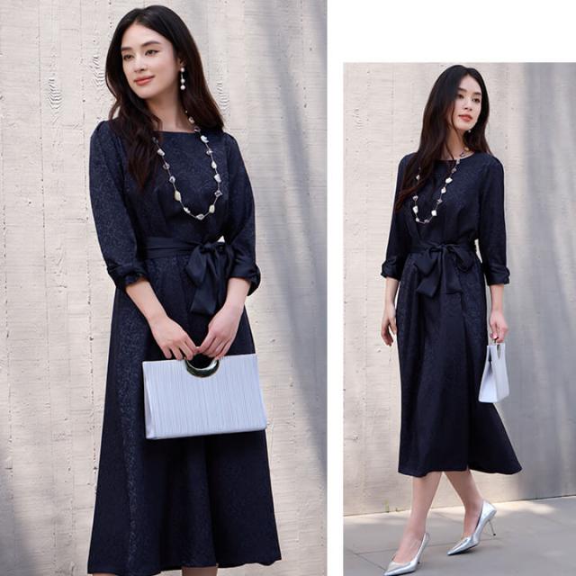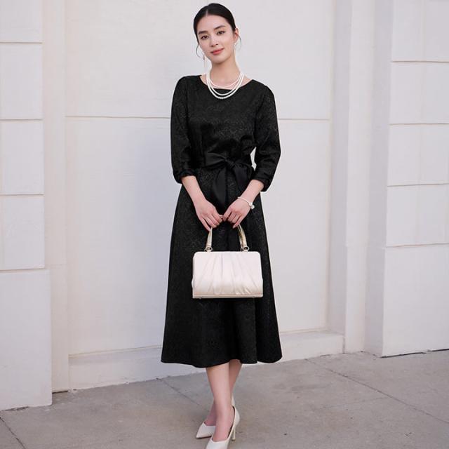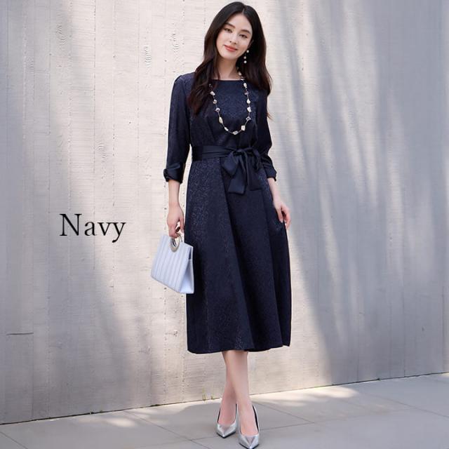 上品なジャカード生地が織りなす、エレガントなワンピースドレス。