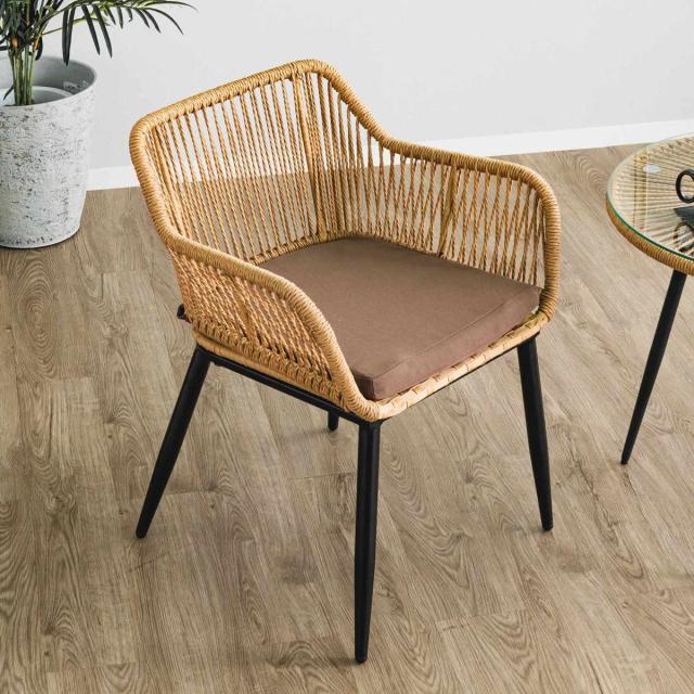 リゾートチェア ラタン調 マーレ ( 椅子 ダイニングチェア クッション付き 肘掛け 腰かけ 籐 人工ラタン 軽量 チェアー イス いす 食卓椅子 リビングチェア 書斎 スチール脚 おしゃれ ナチュラル インテリア 室内 )