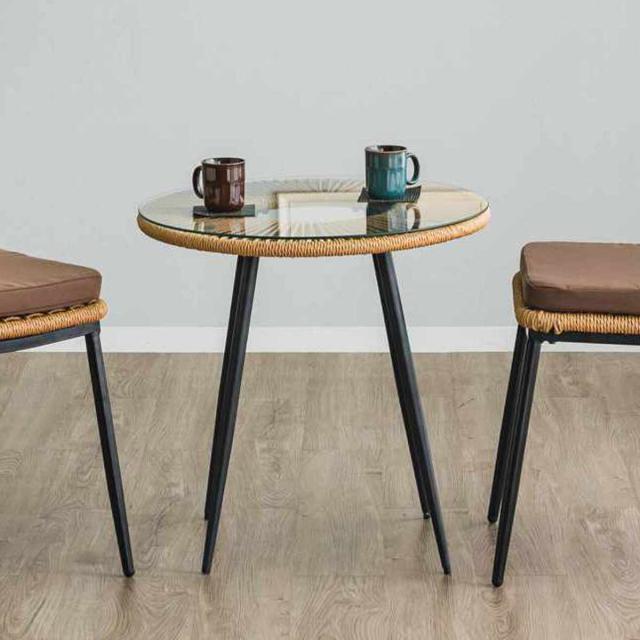 《 LH19380 家具 アジアン家具 インテリア家具 カフェ風 アジアンテイスト リゾート風 屋内 屋外 テラス テラステーブル ウッドデッキ ベランダ ベランピング リゾート 正円 寝室 玄関 リビング table 異素材 シンプル コンパクト ワンルーム 一人暮らし 新生活 大人 女子 可愛い かわいい 強化ガラス ブラックスチール 脚 黒 高さ60 》