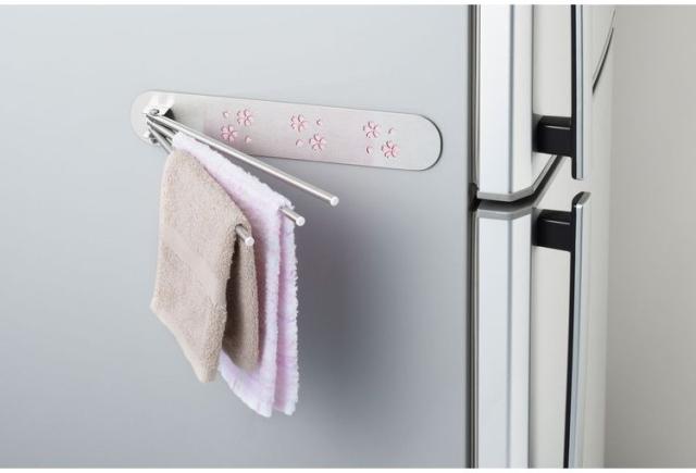 ●ピンクの桜模様がキレイなふきん掛けです。●冷蔵庫横などにマグネットでピタッと取り付け、空間を有効活用できます。●使わないときは邪魔にならないように、たたんでスリムになります。●商品サイズ(約):縦/300mm、横/55mm、高さ/22mm●パッケージサイズ(約):幅/305mm、奥行/59mm、高さ/23mm●商品重量(約):227g●パッケージ重量(約):256g●材質:本体/ステンレススチール、パイプ部/18-8ステンレス、キャップ部/ABS樹脂、取付具/シートマグネット