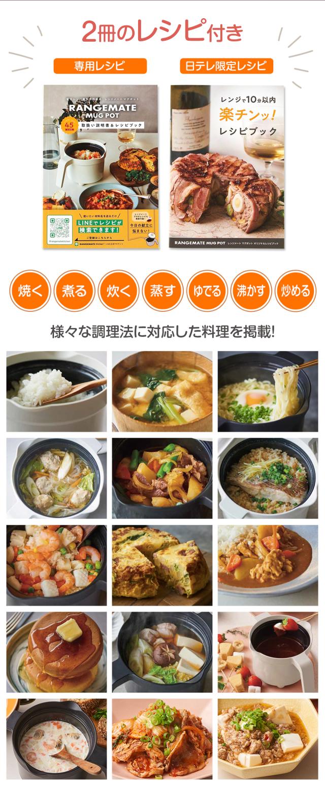 レシピには「焼く」「煮る」「炊く」「蒸す」「ゆでる」「沸かす」「炒める」など、様々な調理法に対応した料理を掲載。お手入れも簡単なので毎日ご活用いただけます。