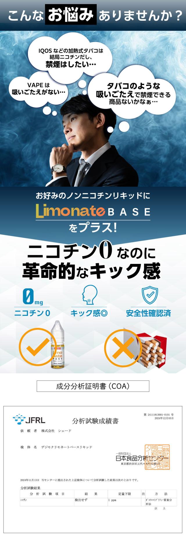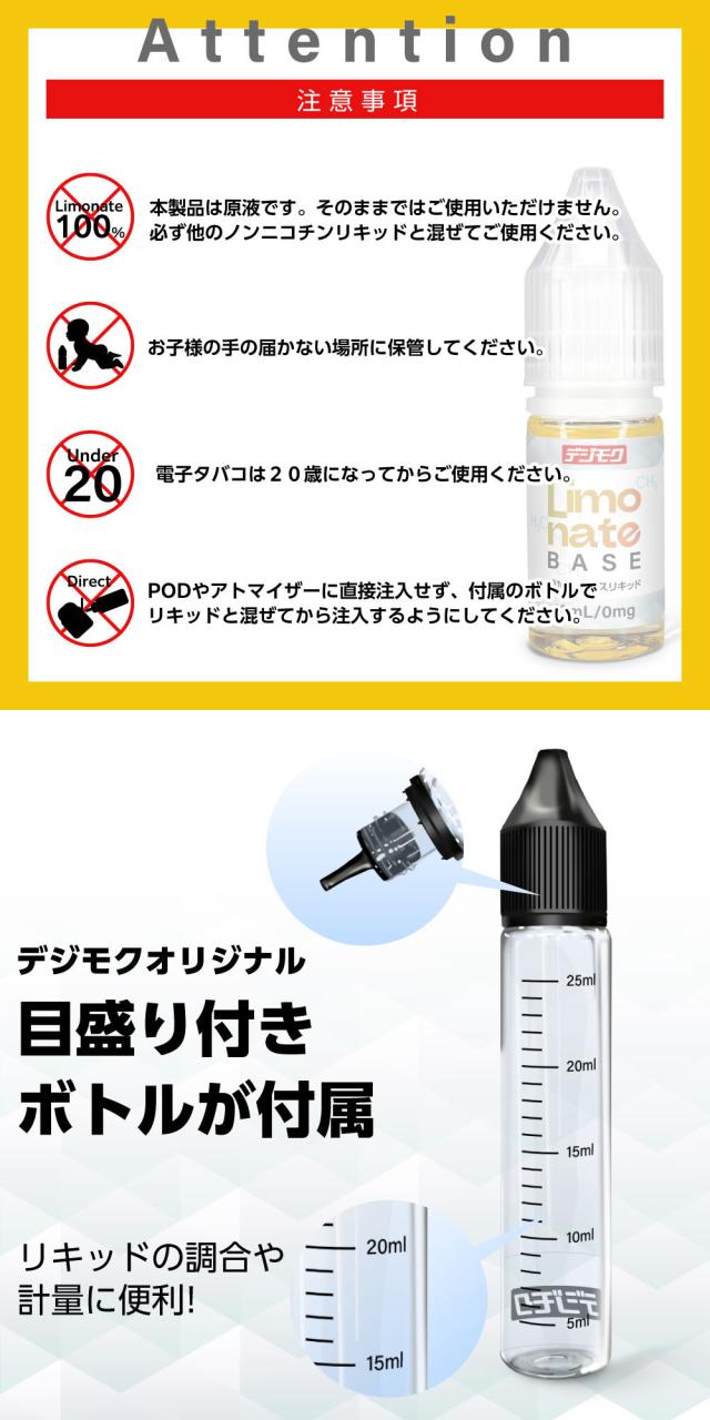 電子タバコ リキッド デジモク リモネート ベース リキッド 添加用 リキッド キック ニコチンのような吸いごたえ 電子タバコ ベイプ 禁煙 節煙 vape ベース液 自作 調合 Limonate Base 目盛りボトル 10ml付き 持ち運び シーシャ