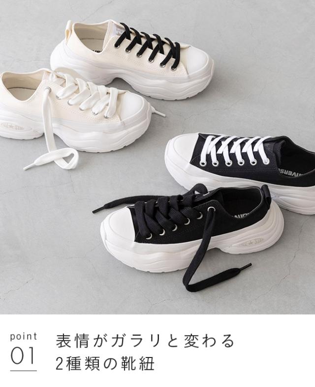 スニーカー ベーシックスニーカー ローカットスニーカー ローカット 短靴 ハイカットスニーカー ハイカット レースアップ 紐あり 紐 シューレース カジュアルシューズ フラットシューズ ぺたんこ靴 ユニセックス ラウンドトゥ ラウンド レディース きれいめ 人気 通勤 厚底 ブランド おしゃれ バイカラー スペア 靴紐 太紐 ファットシューレース ボリュームソール ごつめ 重ため ホワイトソール 白底 ラウンドヒール すべりにくい 痛くない 歩きやすい 疲れない 疲れにくい 大きいサイズ 小さいサイズ アウトドア キャンプ 山 川 デート おでかけ お出かけ カフェ ショッピング 買い物 屋外 外履き デイリー 日常 普段使い 日常使い 普通履き 5cmヒール 5センチヒール ミドルヒール 白 ホワイト 黒 ブラック 22cm 22.5cm 23cm 23.5cm 24cm 24.5cm 25cm 25.5cm 26cm 26.5cm 春 夏 秋 冬 布 クロス ハラコ 布帛 converse コンバース outletshoes アウトレットシューズ welleg ウェレッグ