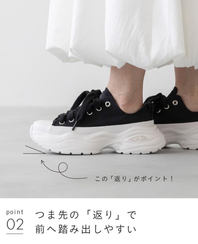 ボリュームソールで自然なスタイルアップ&デニムからスカートまで幅広く合わせやすいローカットデザインが魅力的。