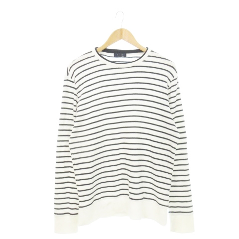 【中古】タカQ タカキュー TAKA-Q ワッフルカットソー ロンT クルーネック 長袖 ボーダー LL 白 ホワイト /AH2