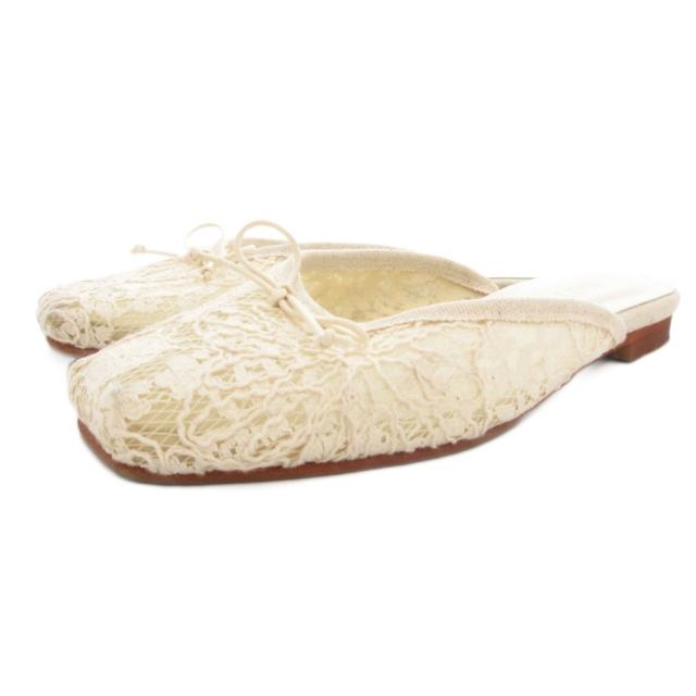 【中古】ルタロン Le Talon スクエアレースバレエミュール サンダル フラットシューズ リボンモチーフ S