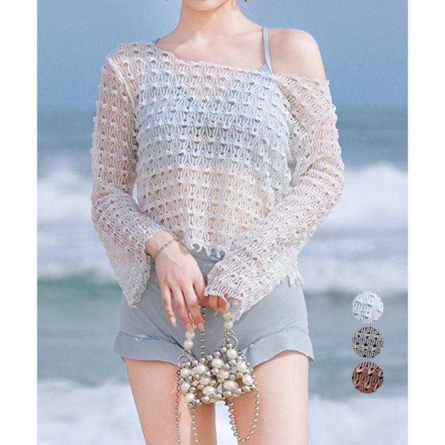 日焼け対策や体型カバーに重宝する長袖タイプのラッシュガードセットされており、リゾート地の海辺やプールサイドでもお洒落に過ごせる
