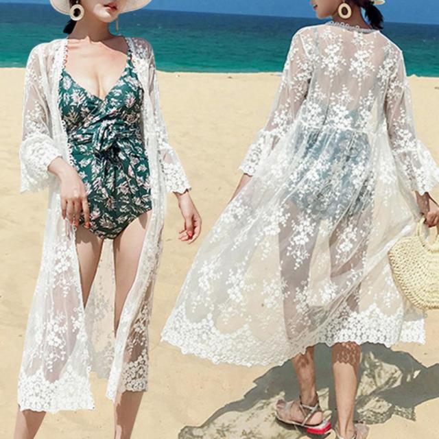 レースカーディガン レディース ロング 水着の上に着る 春 夏 秋 薄手 ホワイト シースルー
