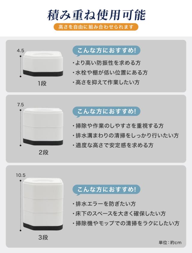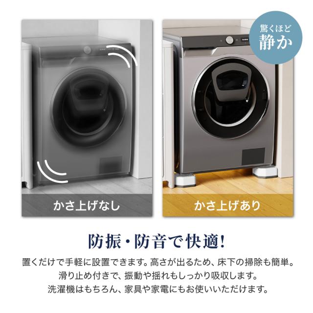 洗濯機 かさ上げ台 防振 防音 ゴムマット 洗濯機かさ上げ台 4個セット 置き台 置き場 台座 かさあげ 台 高さ調整 底上げ 洗濯機かさあげ 洗濯機 乾燥機 冷蔵庫用置き台 縦型 振動防止 防振 防音 騒音対策 4.5cm 1段