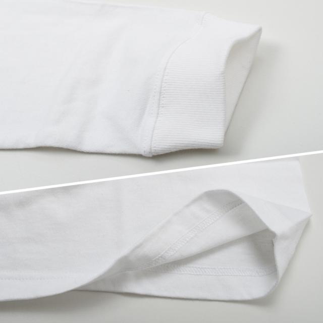 生地には、デイリーユースに最適な【5.6ozの程よい厚み】の生地を厳選。繰り返しの洗濯にもへたらないタフな生地感が魅力です。首周りはハードな着用にも耐えうる【二本針縫製】を採用。シングルステッチでは味わえない、確かな耐久性を実現しました。タフな生地と色褪せないプリントで長く愛用できる一枚です。