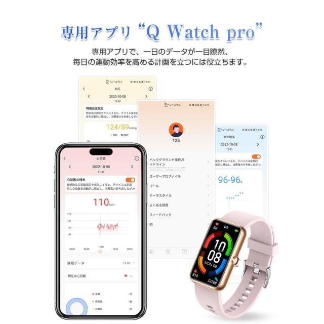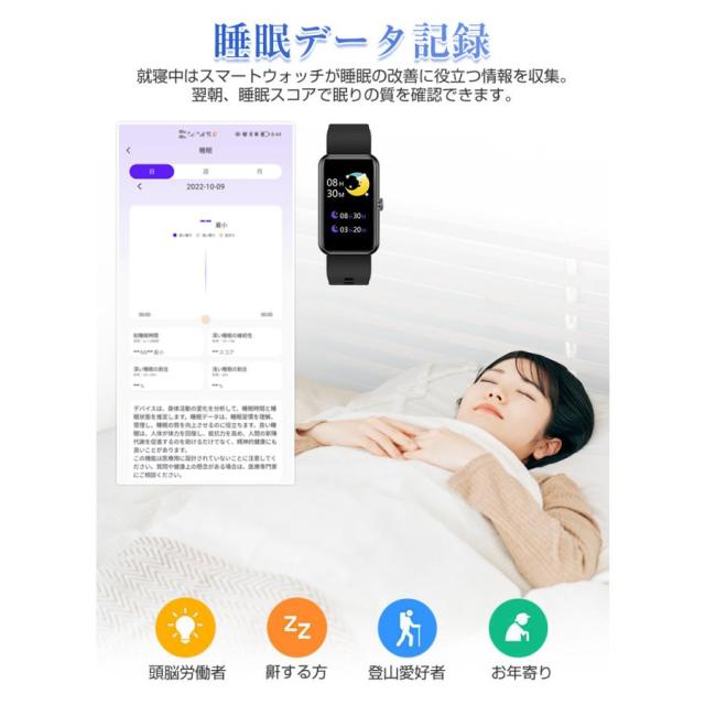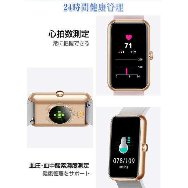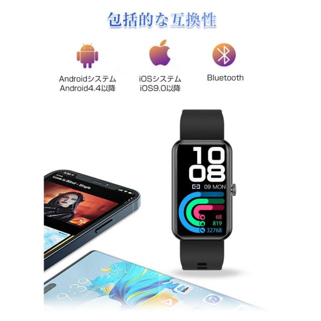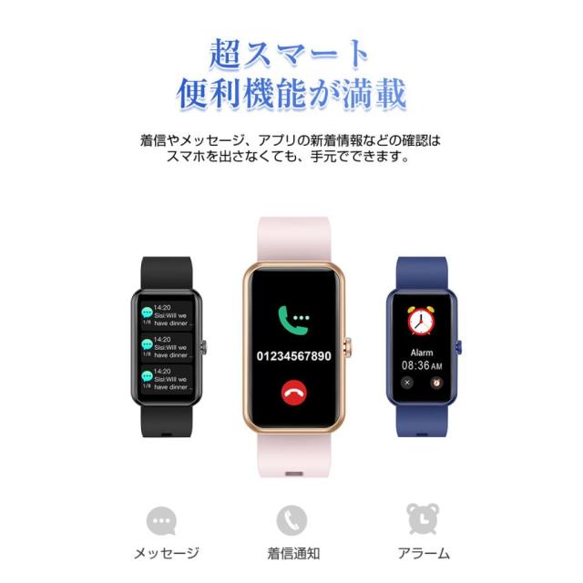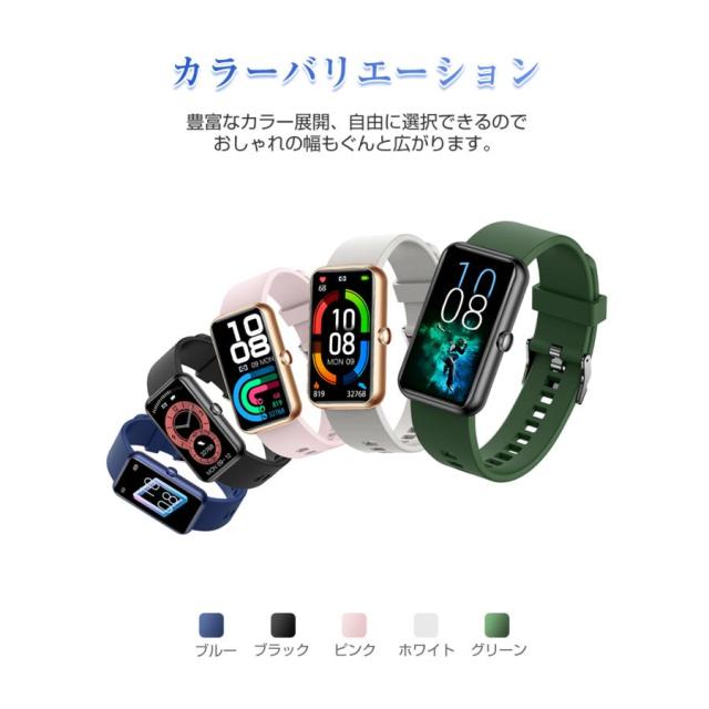 スマートウォッチ スマートブレスレット スポーツウォッチ 腕時計 歩数計 心拍計 血圧測定 血中酸素濃度測定 Bluetooth5.0 スリム