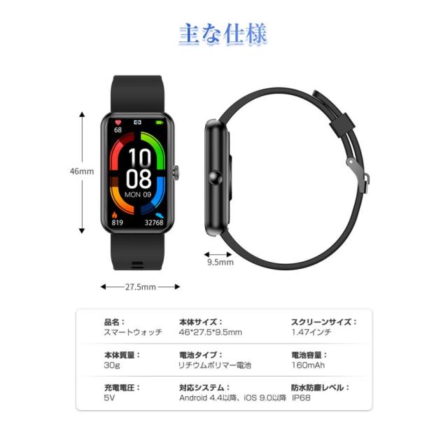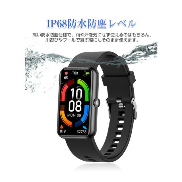 【長時間待機・IP68防水】160mAhの大容量バッテリーが搭載し、フル充電で最大7日の使用、或いは15日の待受が可能です!防水防塵レベルはIP68なので、雨の日でも濡れてしまうのを気にせず使え、日常生活の防水にも対応できます。(温泉など湯気が溢れる場所に避けてください。)