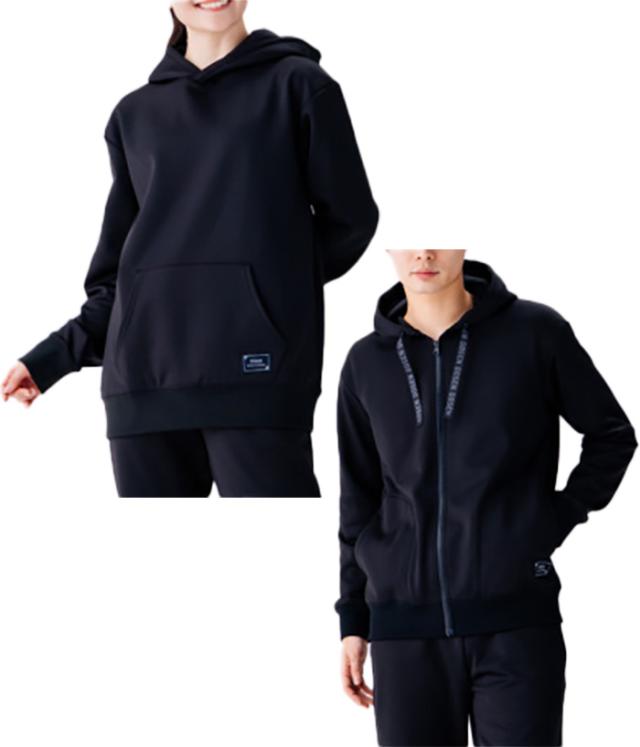 両サイドにポケット付きの裏起毛ストレッチジップアップパーカー。