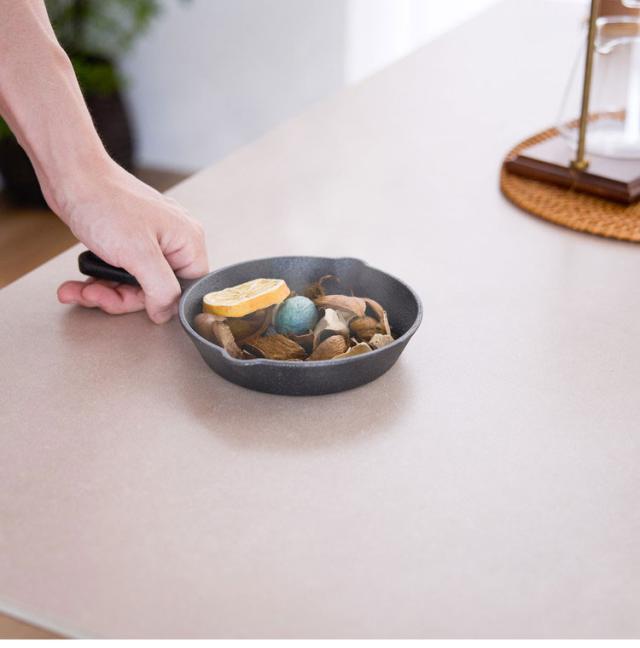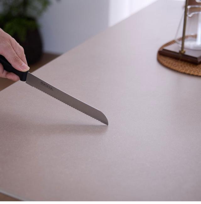 傷や熱に強いセラミック製の天板を使用しています。熱々のフライパンを置いていただくことも可能で、アルコール除菌をしても変色の恐れがありません。脚はオーク材で出来ておりツートンカラーがおしゃれなダイニングテーブルです。