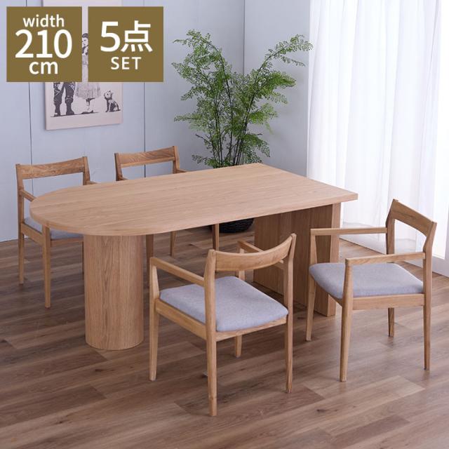 ダイニングセット テーブル 幅210cm 肘付きダイニングチェア 4脚セット リビングテーブル 食卓机 木製テーブル 半円形 4人 おしゃれ デザイナーズ 北欧 木製椅子 食卓椅子 デザイナーズ(代引不可)【送料無料】