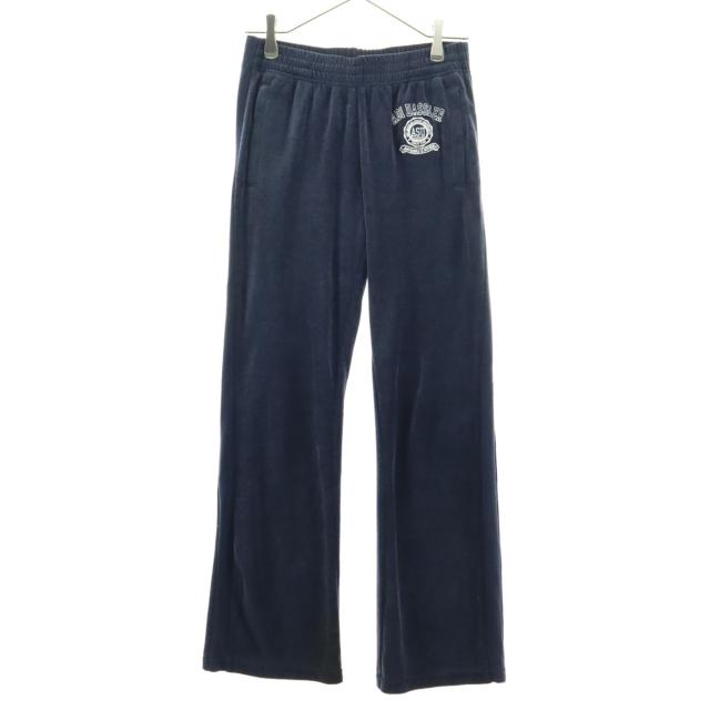 adidas アディダス ロゴ刺繍 パイル地 イージーパンツ M ネイビー レディース