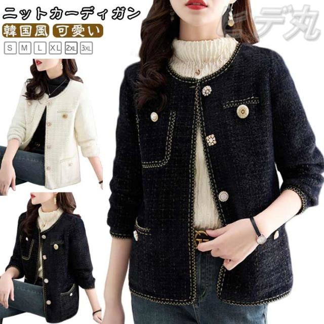 長袖 ニット 秋冬 レディース フォーマル 韓国風 レディース ノーカラージャケット カーディガン ニットカーディガン アウター ゆったり ツイード 大人 七五三 きれいめ ボレロ