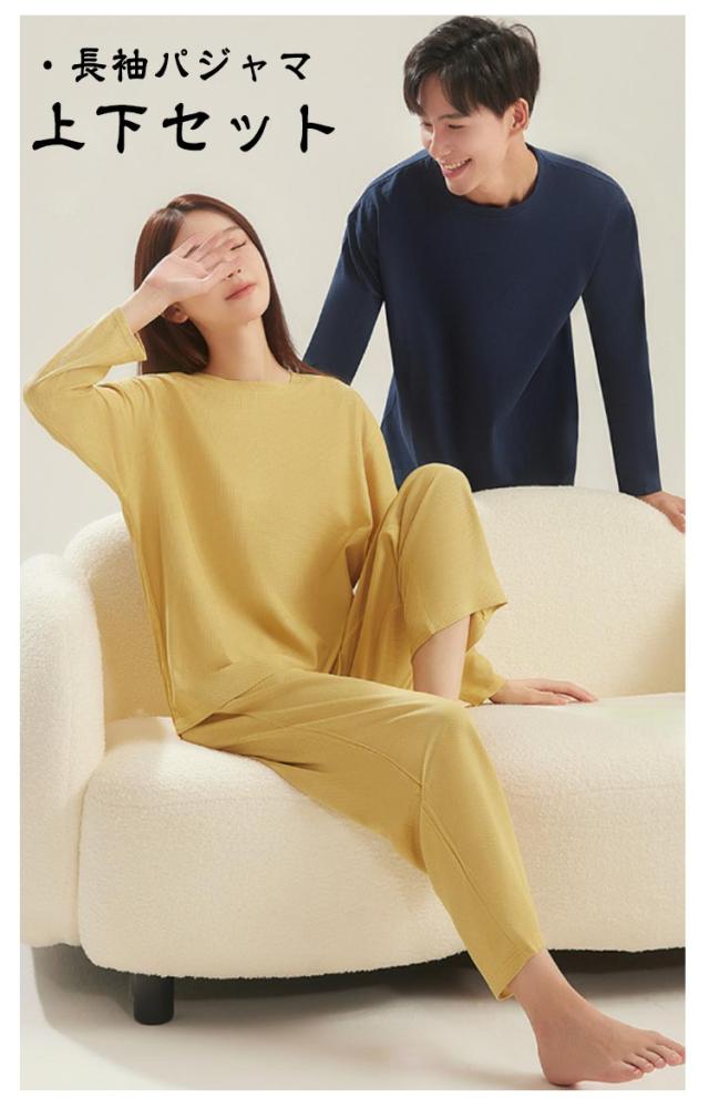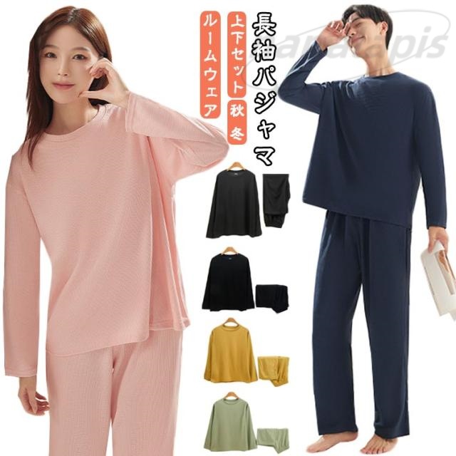 レディース パジャマ 長袖パジャマ ワッフル生地 上下セット ルームウェア メンズ 長袖 寝間着 ナイトウエア 部屋着 おしゃれ 秋