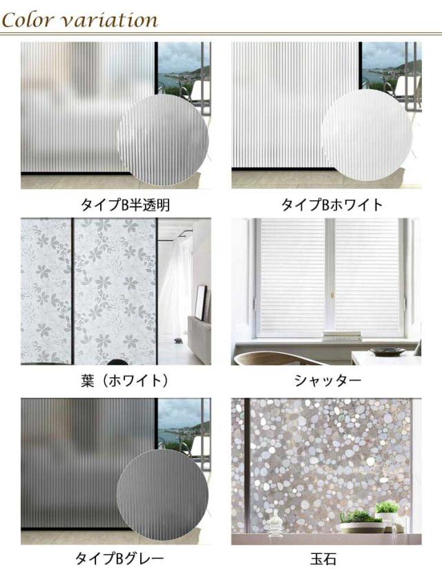 | サイズについての説明 | サイズ:45cm*2m 60cm*2m 75cm*2m 90cm*2m 120cm*2m 低い不透明度:タイプB半透明、玉石、はな、ひし形 高い不透明度:タイプBホワイト、葉(ホワイト)、シャッター、タイプBグレー、ジャスミン、半透明、ホワイト、葉(グリーン)、キラキラ(半透明)、キラキラ(ブラック)、キラキラ(グレー)、キラキラ(シルバー) |