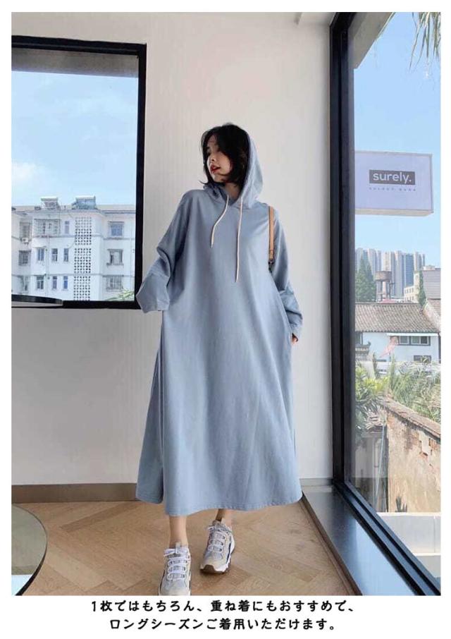フレア パーカーワンピース 長袖 レディース スウェット 体型カバー ロングワンピース ワンピース 無地トレーナー ロングワンピ ゆったり 秋 パーカーワンピ 大きいサイズ 春 お腹 パーカーワンピース 胸周り お尻