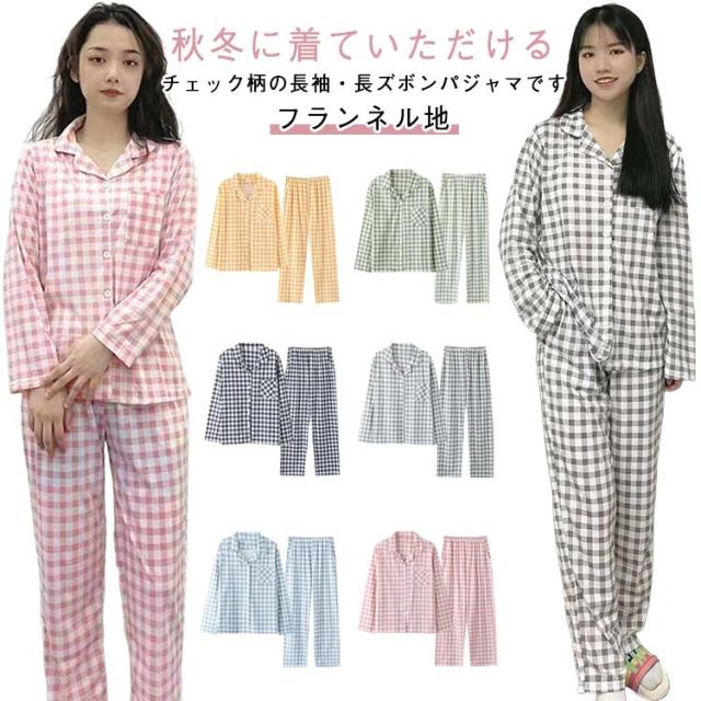 ルームウェア パジャマ フランネル ペア 長袖 前開き 防寒 秋冬 レディース ナイトウェア チェック柄 メンズ 2点セット セットアップ フランネル 部屋着 寝間着 長袖パジャマ 起毛加工 上下 あっあた 暖かい 長ズボン 秋物 秋服 100%綿 敬老の日 プレゼント