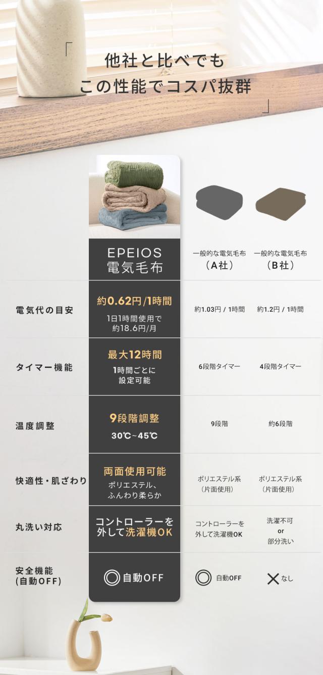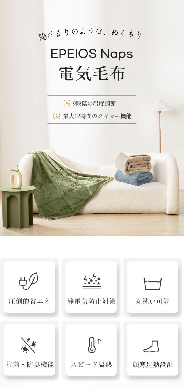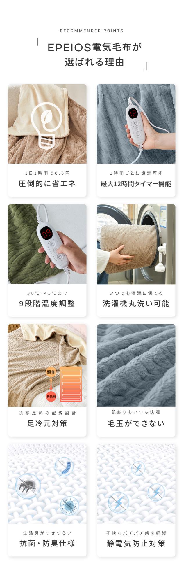 1時間たった0.6円 電気毛布 掛け敷き 大判 188*130cm 電気ブランケット 膝掛け EPEIOS 12時間 タイマー付き 9段階温度 抗菌防臭 ダニ退治 自動電源オフ 丸洗い 2人 電気ひざ掛け 省エネ ふわふわ 柔らかい