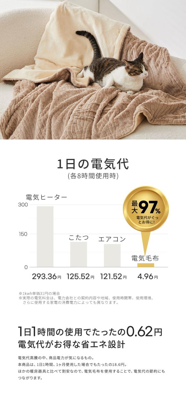 「最低温度」で1時間使用でも約0.62円、12時間でも8円以下で経済的。9段階温度調節&1〜12時間タイマー付きで、寝る前の10分だけでも快適です。