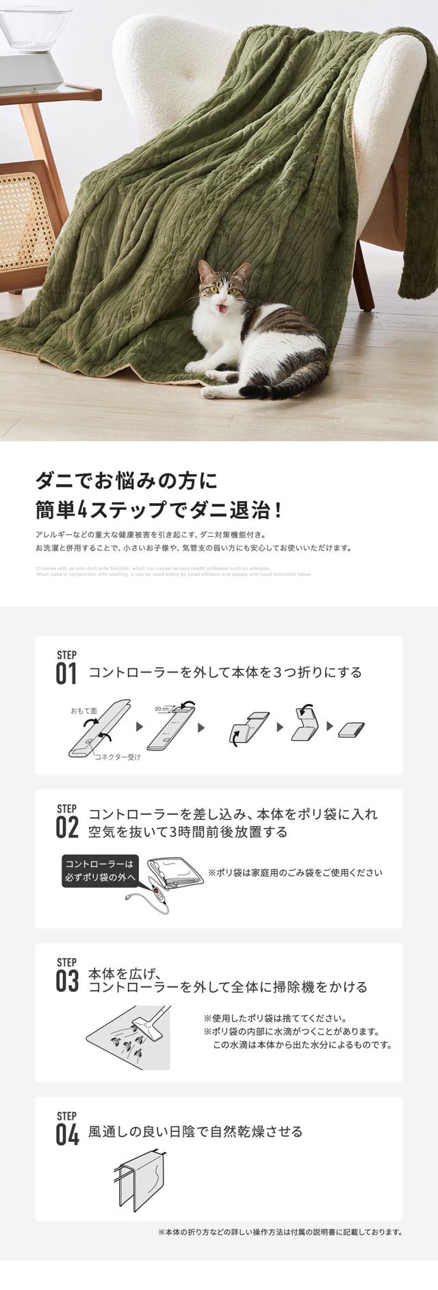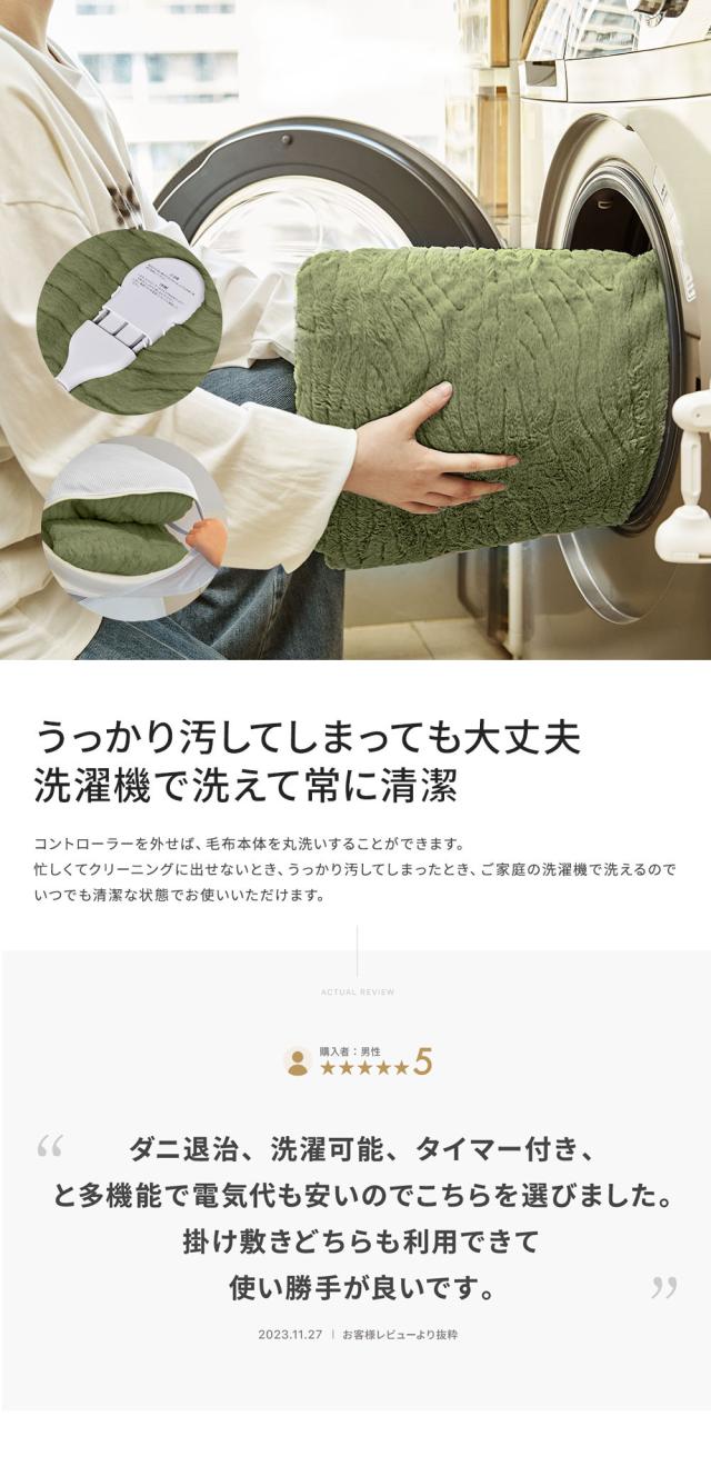 ●ドラム式洗濯機ではヒーターを傷める恐れがあるため基本的に使用は推奨できませんが、洗濯ネットに入れて脱水まで年1回程度であれば可能との確認が取れております(乾燥不可)。 ●洗濯ネットに入れて「毛布洗いコース」をご使用ください。 |