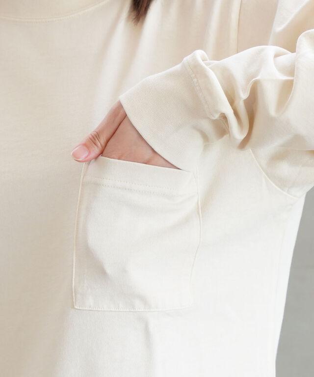 幅広いコーディネイトに合わせやすいポケット付きTシャツ。