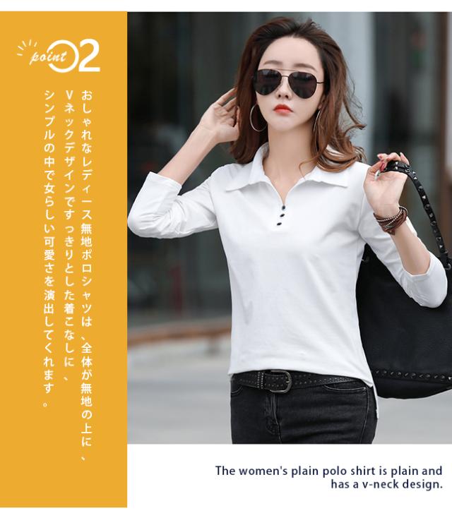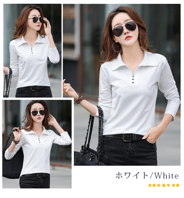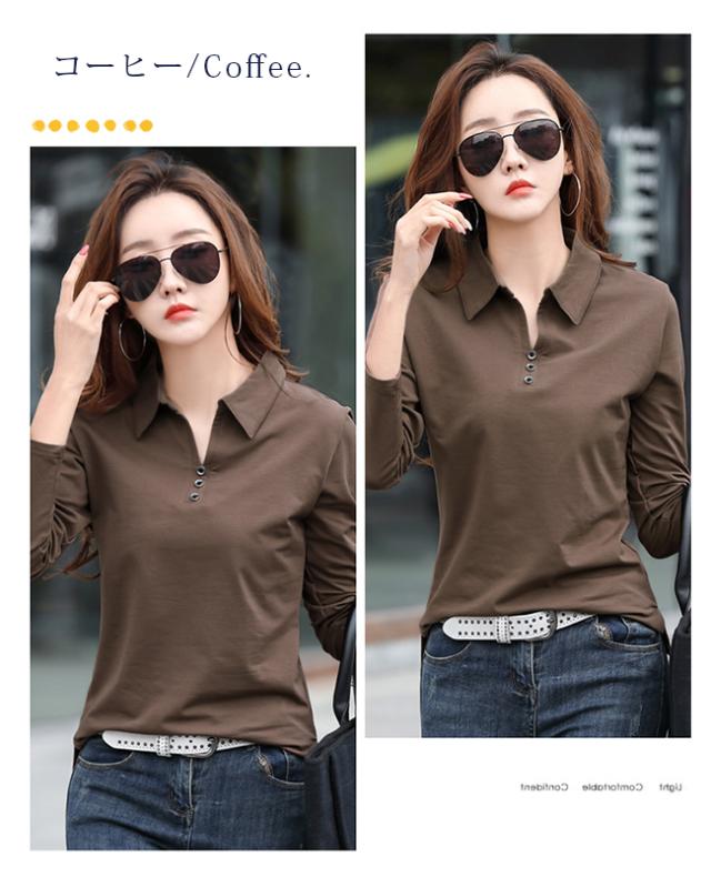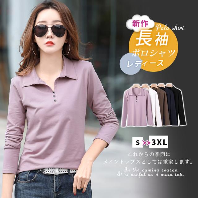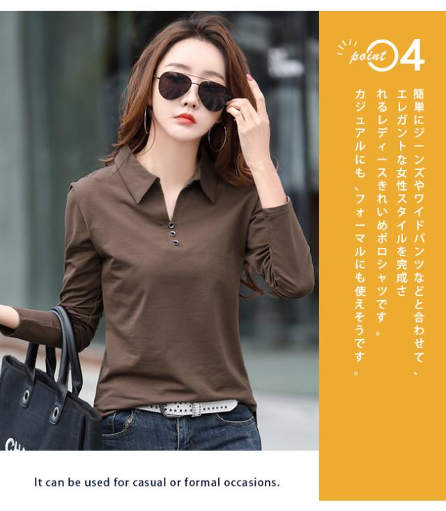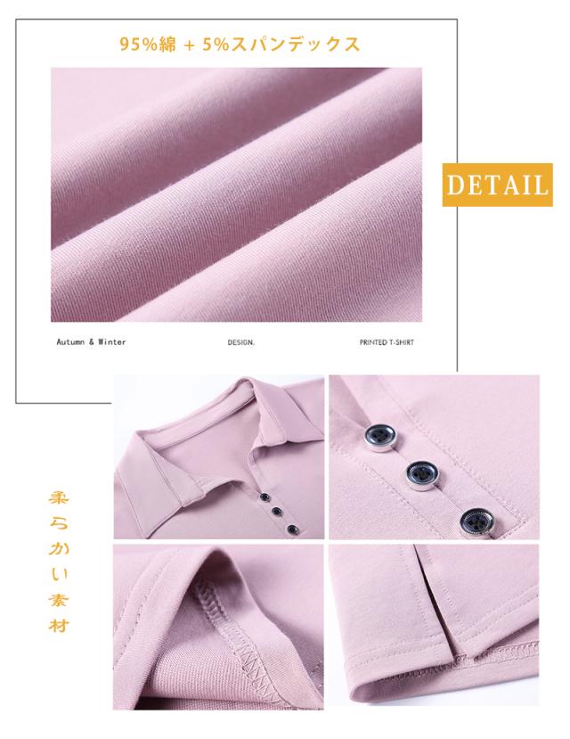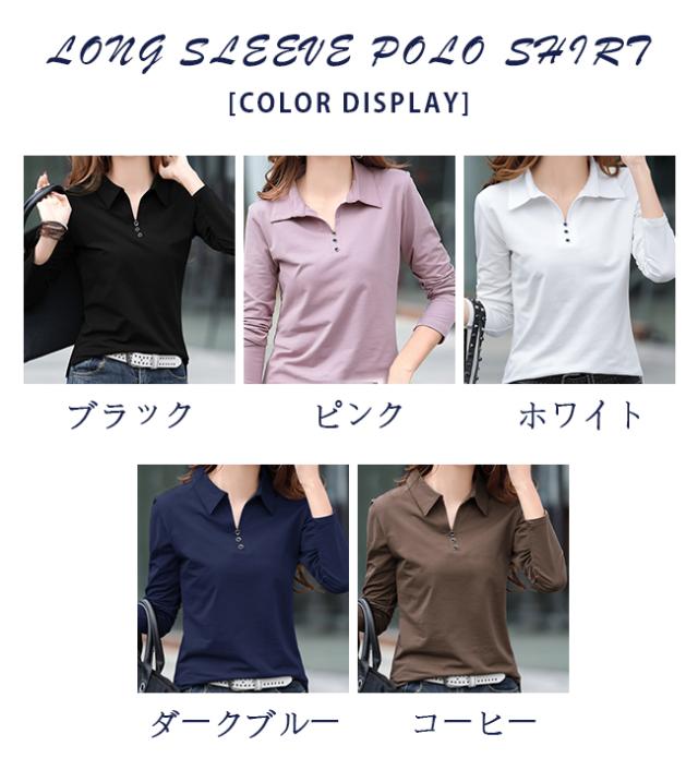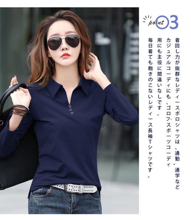 長袖ポロシャツ レディース 無地 ゴルフウェア テニスウエア スポーツポロ カットソー 綿 スリムフィット ポロシャツ 普段着