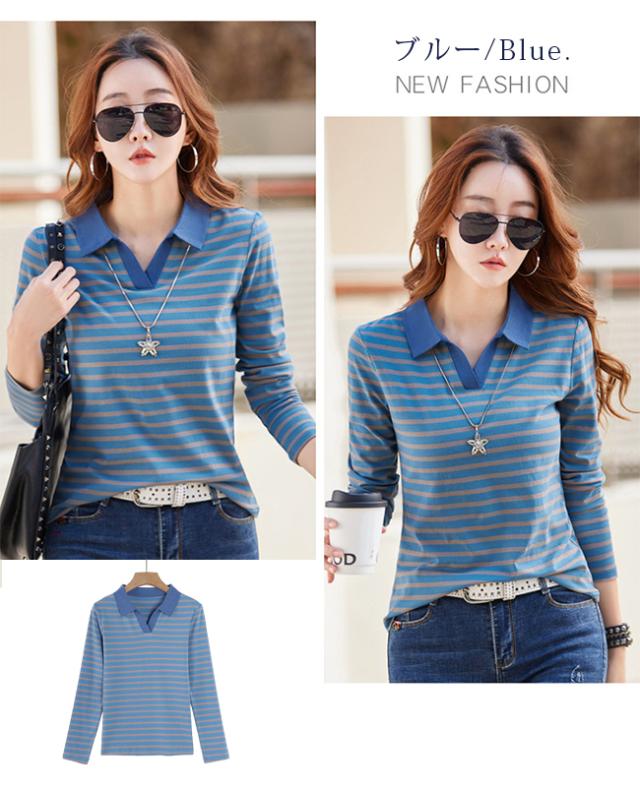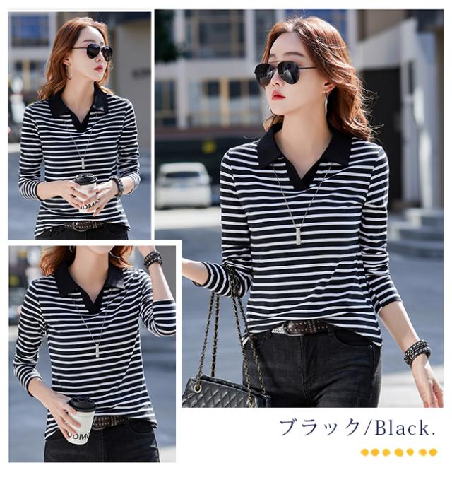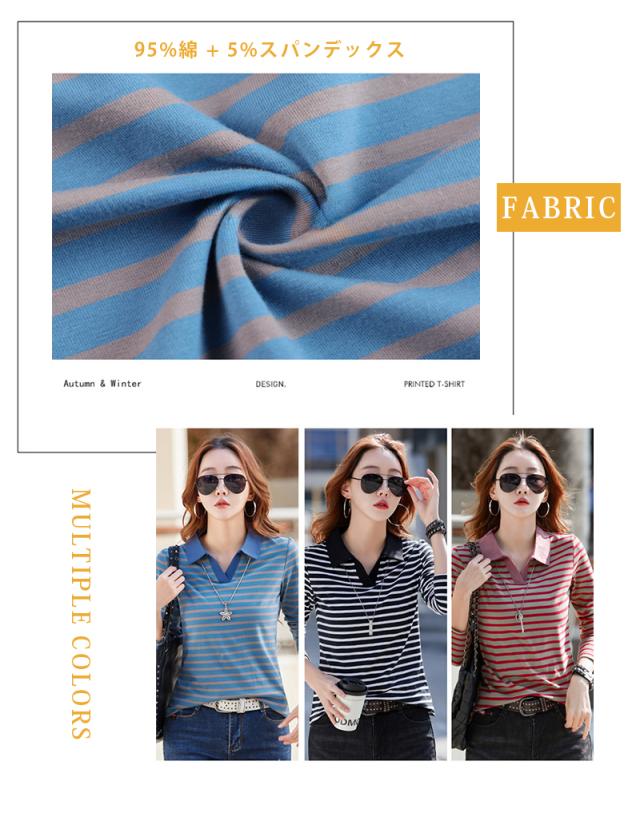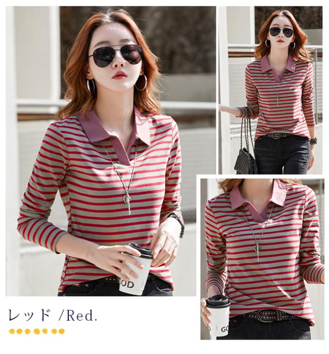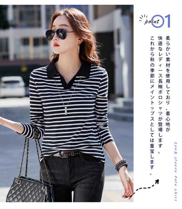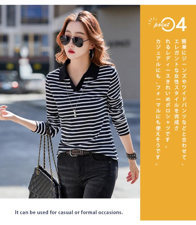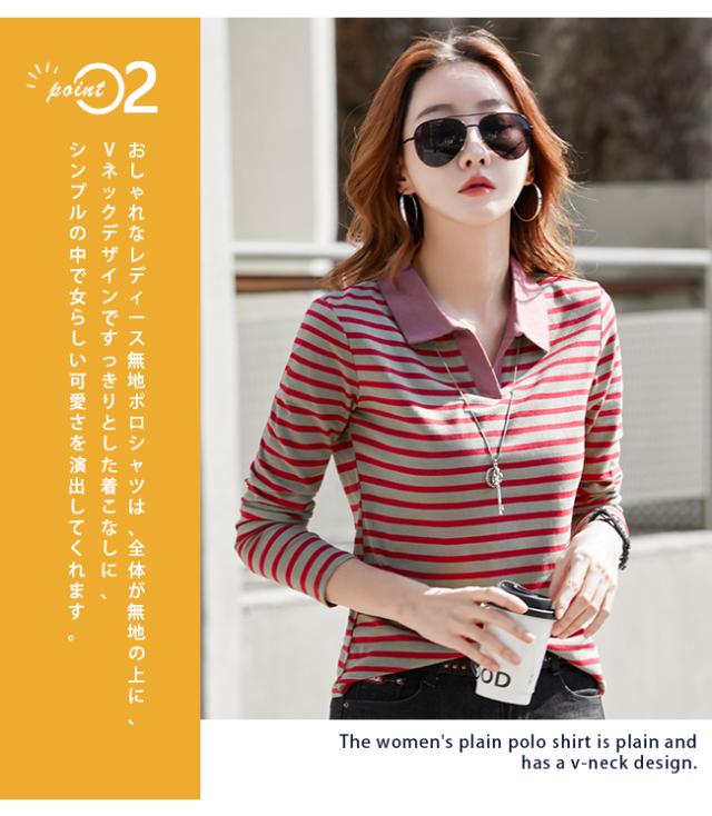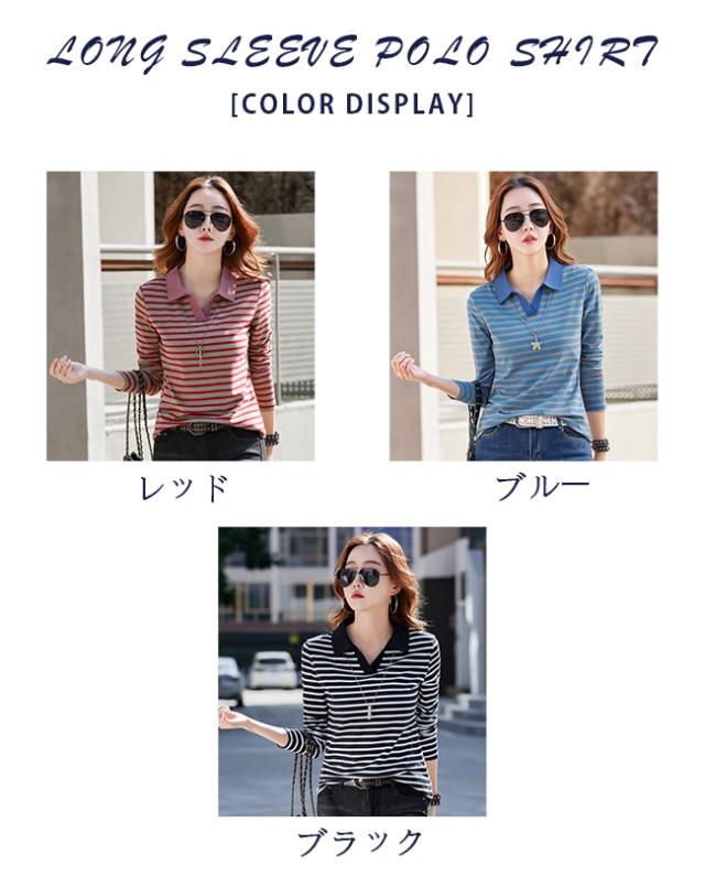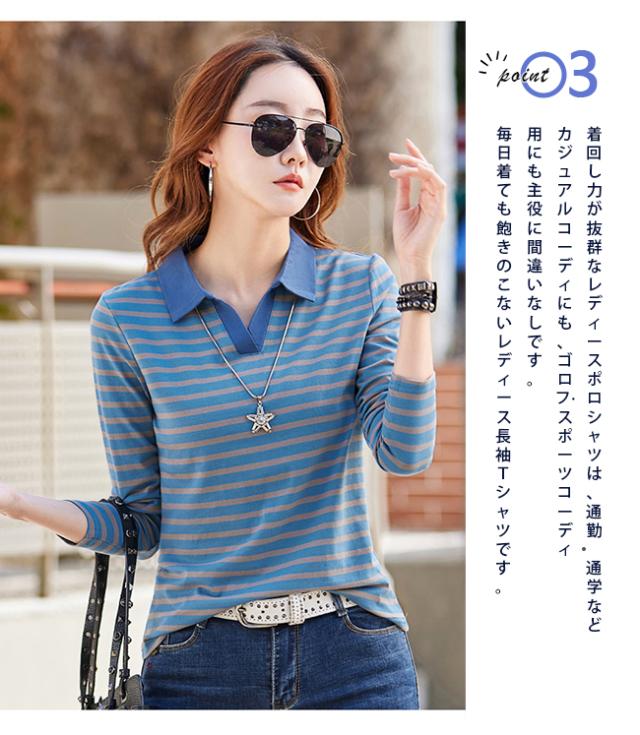 ポロシャツレディース 長袖 Tシャツ 綿 ボーダー柄 大きいサイズ スポーツ ゴルフシャツ 作業服 事務服 オフィス 通勤 綿 おしゃれ トップス polo カジュアル