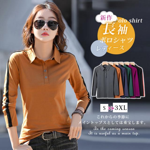 ポロシャツ レディース 長袖 襟付き tシャツ スポーツ お洒落 ゴルフウエアー テニスウェア ボウリングウェア トップス 綿 カットソー きれいめ