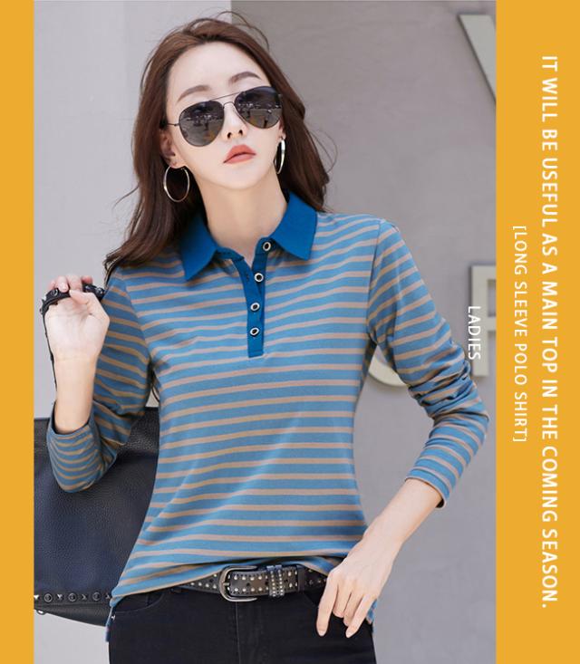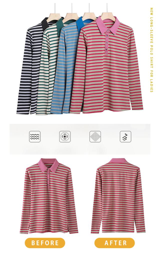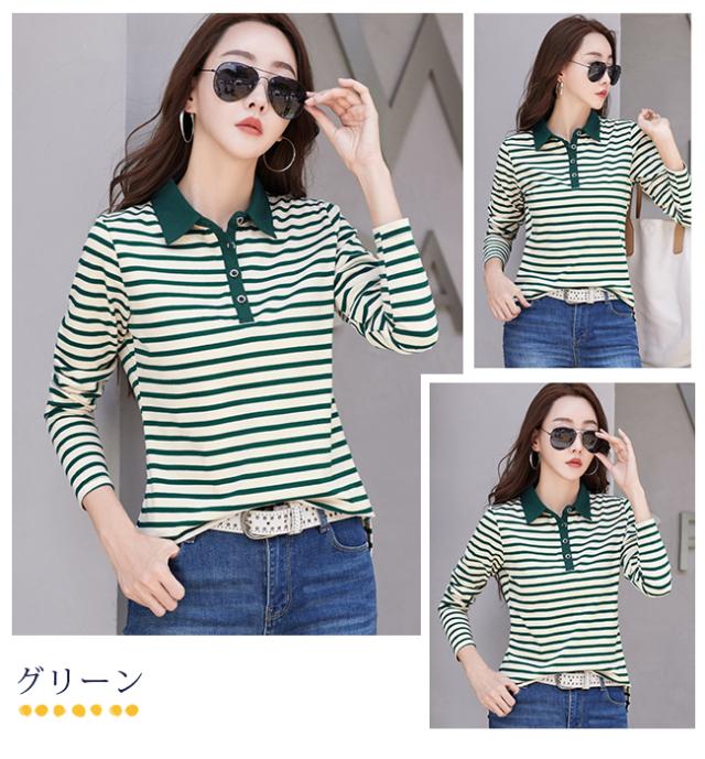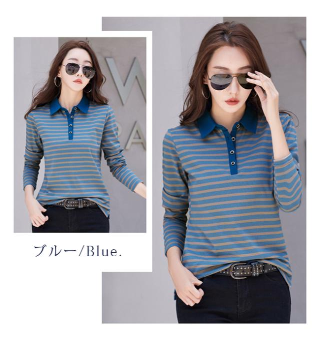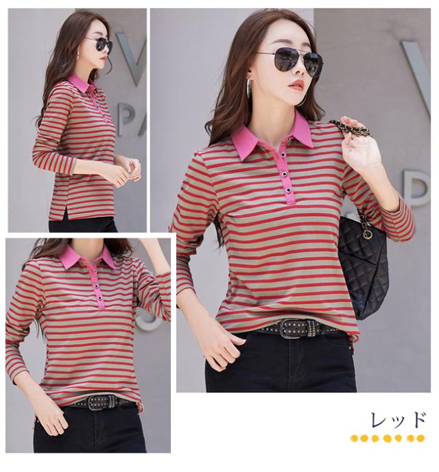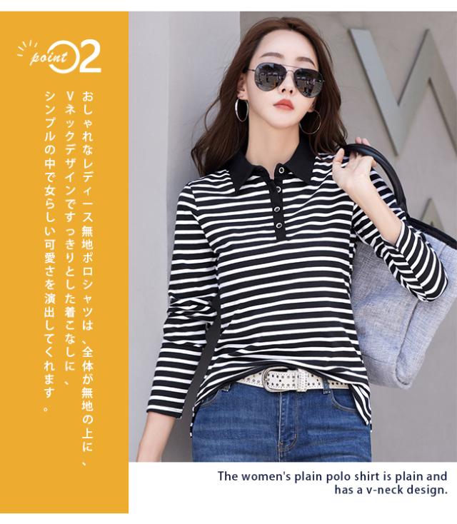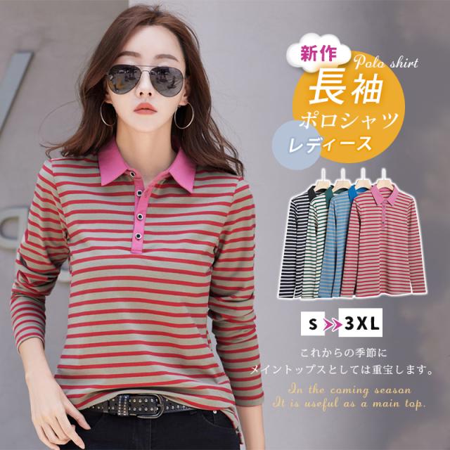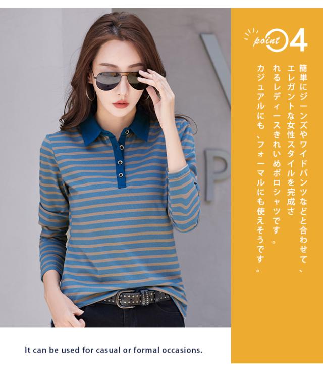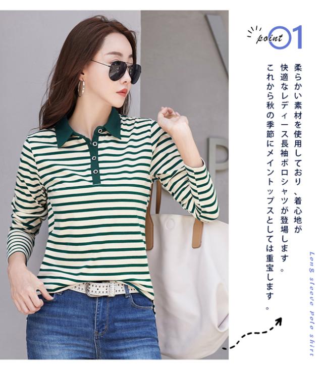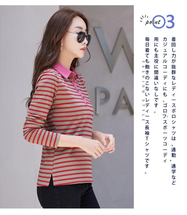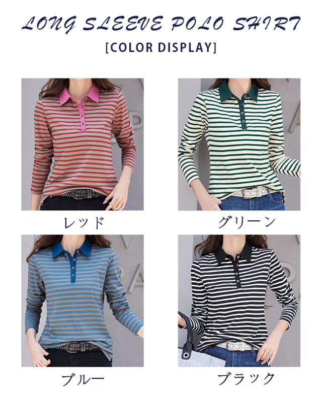 ポロシャツ レディース 長袖 Tシャツ 綿 ボーダー柄 大きいサイズ スポーツ ゴルフシャツ 作業服 事務服 オフィス 通勤 綿 おしゃれ トップス polo カジュアル
