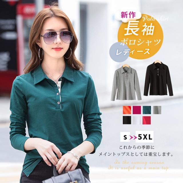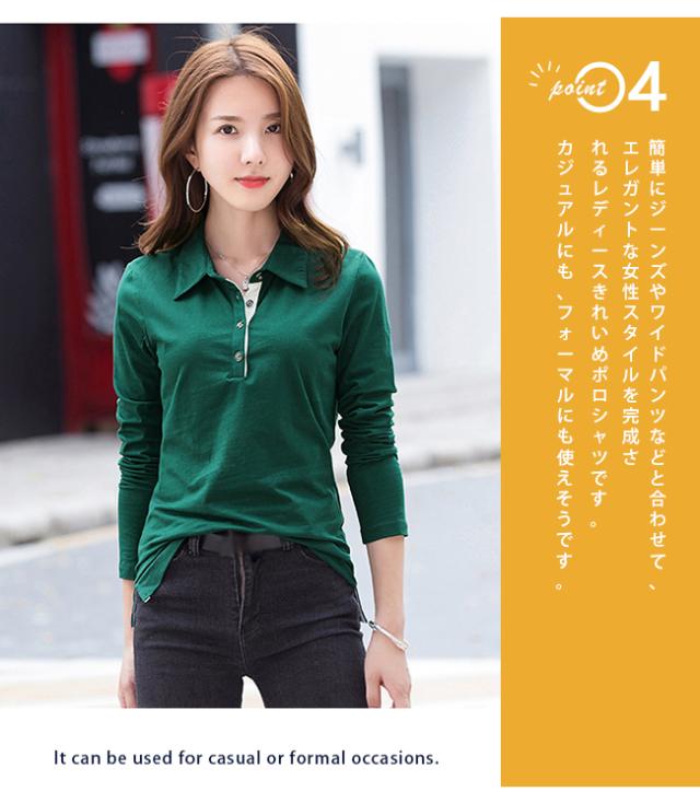 長袖ポロシャツ レディース カットソー 薄手 無地 ゴルフウェア 女性 細身 綿 襟付き Tシャツ ゴルフ テニス ポロ 仕事着 トップス 秋服