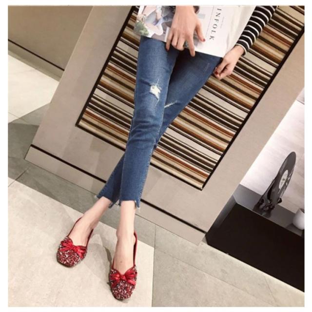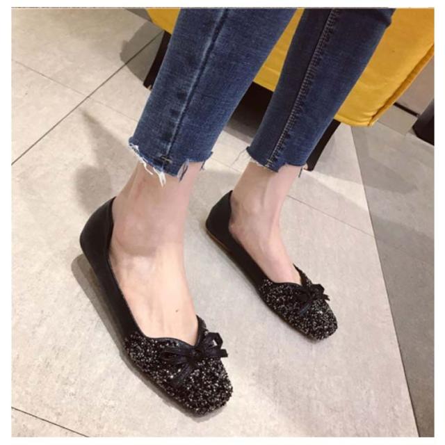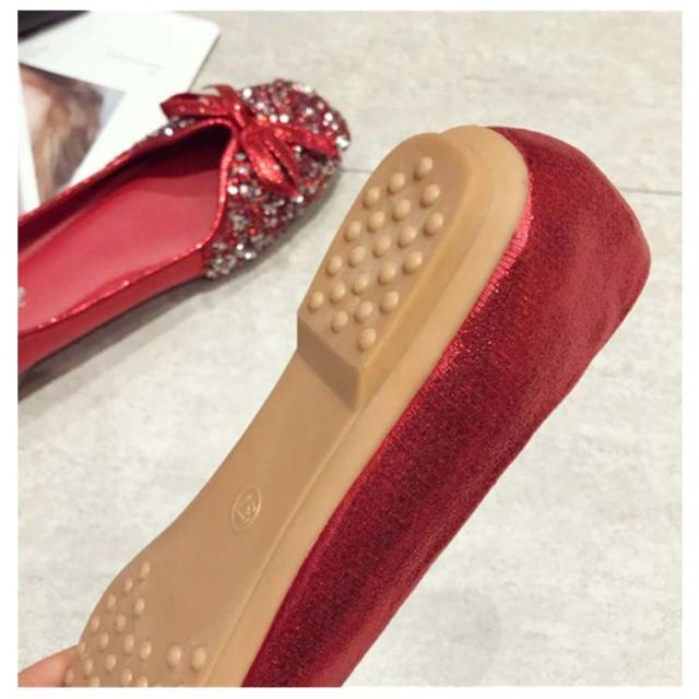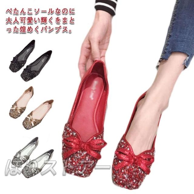 カラバリ 結婚式 キラキラ パンプス 走れる 通勤 ローヒール Vカット グリッター キラキラ バレエシューズ フラット ぺたんこ オフィス 痛くない リボン パーティー パンプス スクエアトゥ