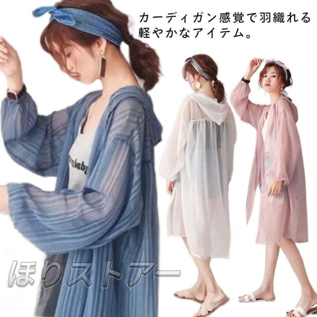 カーディガン レディース 長袖 シアーカーディガン フード付き シースルー 透け感 ロングカーディガン 夏 ガウン トップス UVカット パーカー 薄手 ライトアウター 前開き 羽織り 紫外線対策 冷房対策 ラッシュガード ゆったり 体型カバー 通勤 春 夏 夏服 送料無料